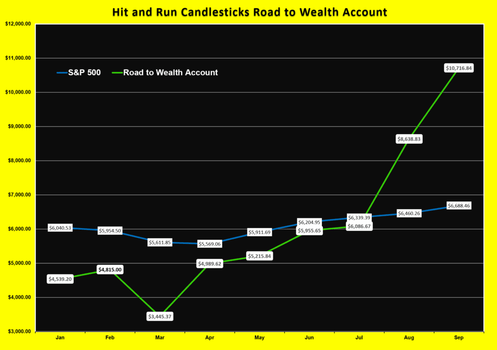 π As of Market Close October 10, 2025, the Road to Wealth Account is up 198% in 8-1/2 months.